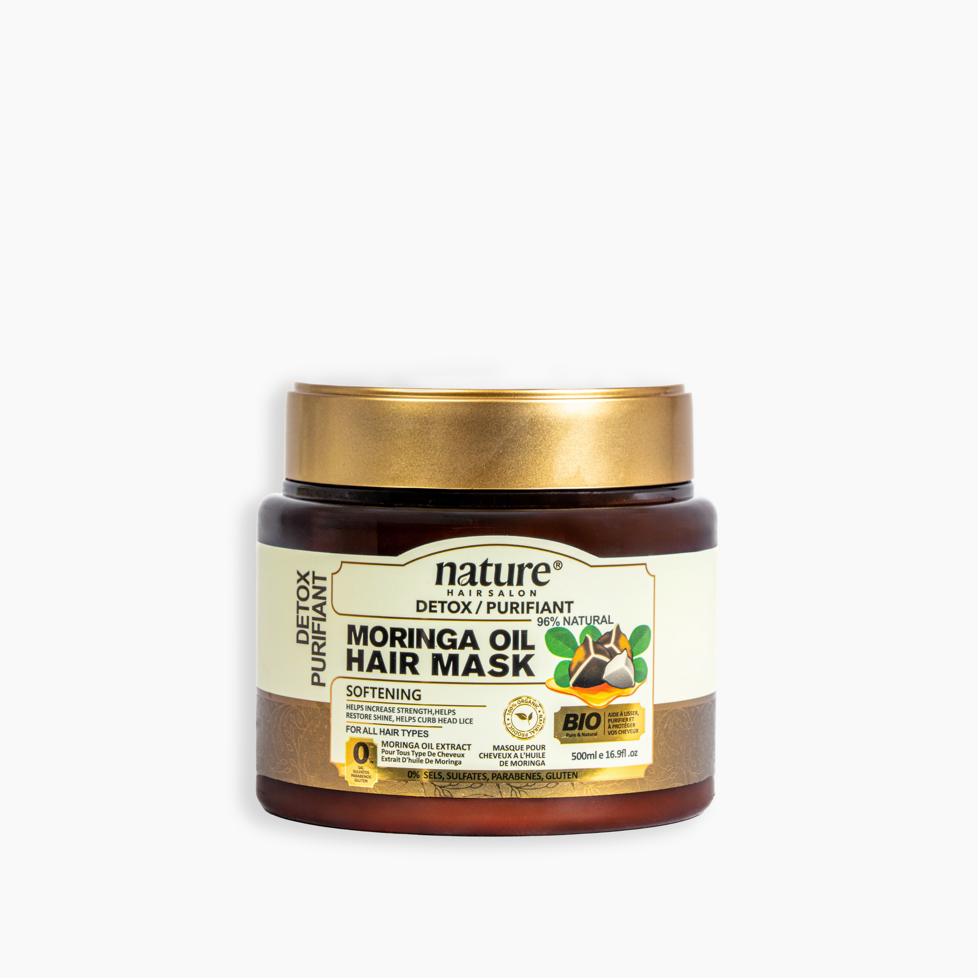 Redonnez vie à vos cheveux avec le Masque Capillaire Nature à l’Huile de Moringa, une formule exceptionnelle conçue pour purifier, adoucir et revitaliser tous les types de cheveux. Enrichi en huile de moringa pure et composé à 96 % d’ingrédients naturels, ce masque est le secret d’une chevelure éclatante et en pleine santé.